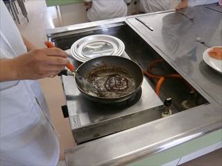 材料の下ごしらえや焼いたりして、最後はソースも作りました。生徒は楽しそうに