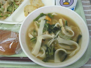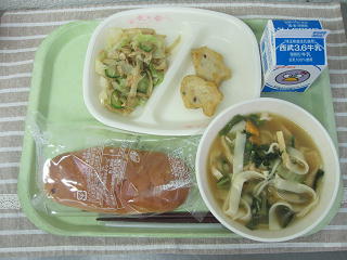 チーズパン 煮ぼうとう ナゲット ヘルシーサラダ 牛乳