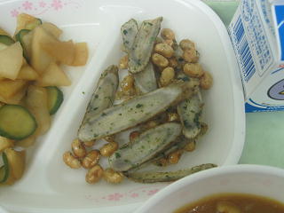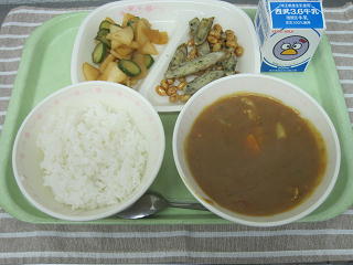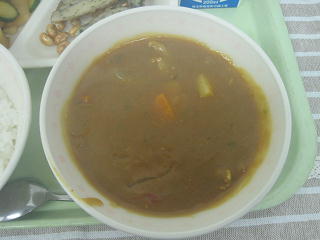 <さつまいも入りカレーです><たくさん噛むようにごぼうも大きめです>