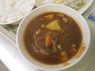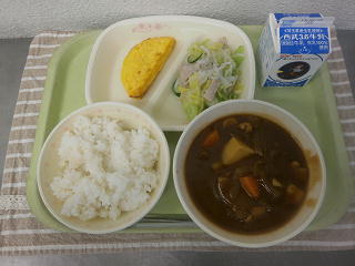 ハヤシライス オムレツ ハムと大根のサラダ 牛乳