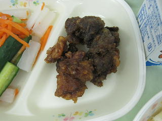 17日(火)の給食 豚肉と鶏レバーの香味揚げ