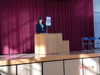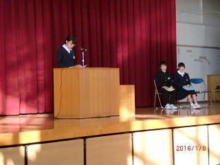 各学年代表の言葉、学校長の言葉と続き、新年、