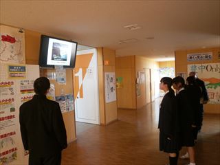 ★モニターを見る生徒たち ★校内にある防災教育・震災コーナー
