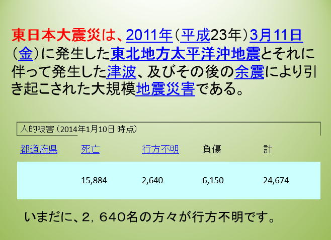 2,600余名の方々が行方不明であるという、この現実をけっして忘れることなく、私た