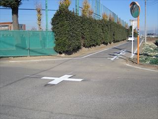 の東側道路の路肩表示が、薄く見えない状態でしたが、昨日、