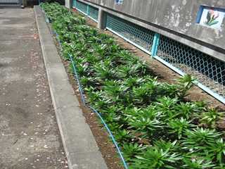 正門の花壇に植えられている「ユリ」が、もうすぐ開花の時期を迎えます。昨年末に植えて、冬を越しいよいよ見事な花を咲かせる時が迫ってきました。ちょうど2ヶ月前、1年生が入学して来た頃は、5㎝ほどの背丈だったものが、今は1m前後のものばかりです。「自然の生命力」の素晴らしさを感じますね。