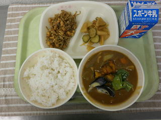 夏野菜カレー 大豆とごぼうの甘辛炒め