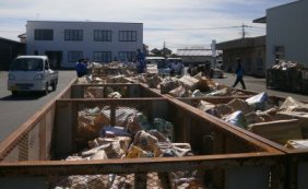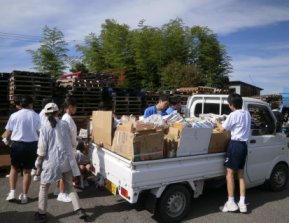 地域の皆様のご協力をいただき、新聞紙や雑誌、ダンボール、空き缶等がたくさん集まりました。