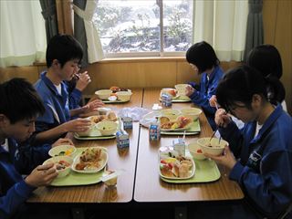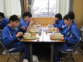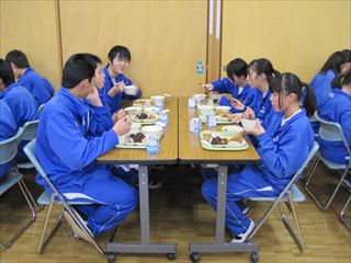 今回は、3-1でした。生徒も楽しそうに配膳していました。食べてるときの顔が、