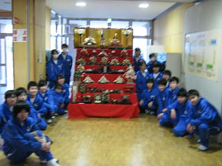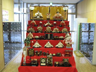 本日総合文化部の皆さんの力を借りて、段飾りの雛様ができあがりました。