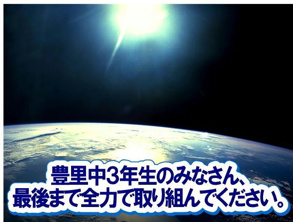 豊里中の3年生のみなさん、みなさんのことを学校全体で応援しています。