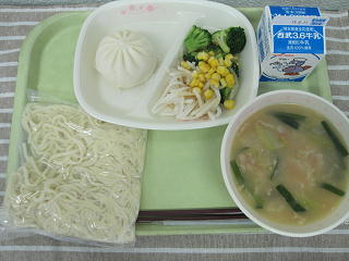 長崎ちゃんぽん 肉まん 温野菜 牛乳