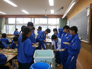 給食のおかわりタイム!たくさんの3年生がおかわりしてくれます。