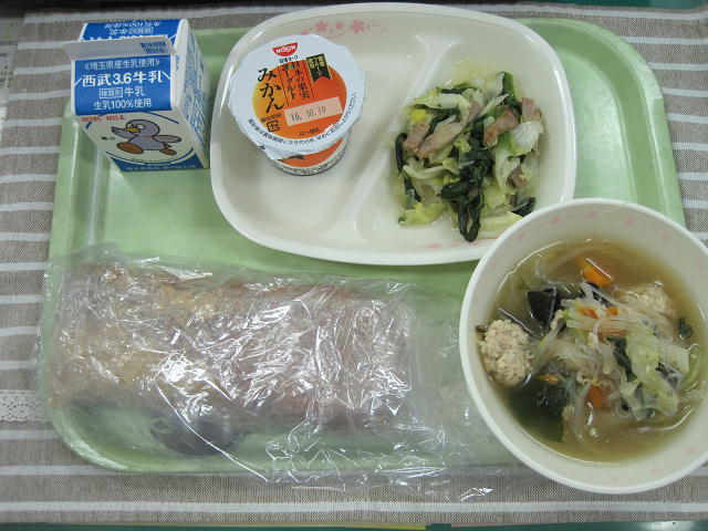 ほうれん草のソテー みかんヨーグルト 牛乳