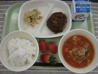 19日(火)の給食 ハンバーグデミグラスソース