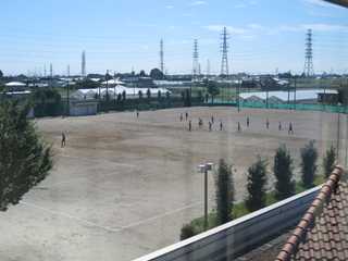 ★太陽がまぶしい夏休み最終日です。グランドでは、サッカー部が練習を続けています。