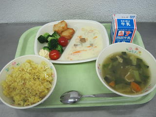 本日の給食 カレーピラフドリア風
