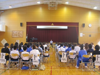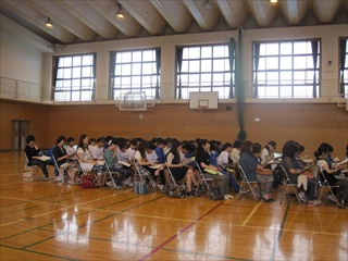 本日(18日)午後から、2年生宿泊体験学習の説明会を体育館にて行いました。