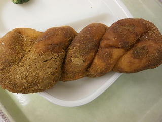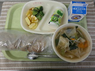今日の地場産物は、米粉ツイストパン、牛乳、にんじん、たまねぎ、じゃがいも です。