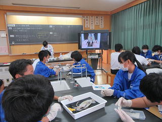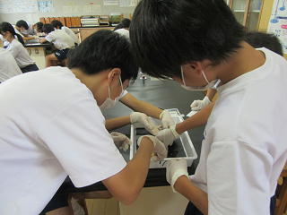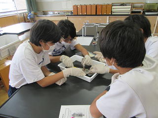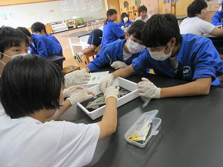 「解剖は苦手・・・」と言っていた生徒も、1回は解剖ばさみを使うなどして、頑張って取り組んでいました。