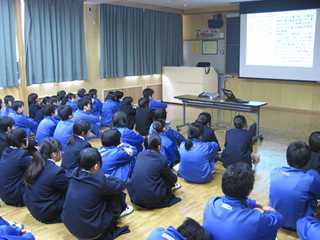 最近、携帯電話による様々な事件などがありますので、卒業を迎える3年生には今後、自らが利用するであろう携帯電話の正しい使い方をもう一度確認しておくためにこの教室を実施しました。
