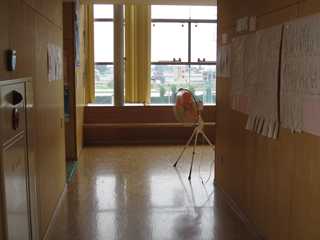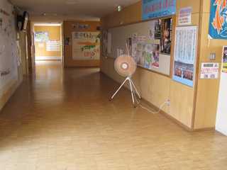 連日の猛暑により本校では、熱中症対策として廊下に大型扇風機を設置しました。