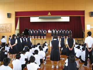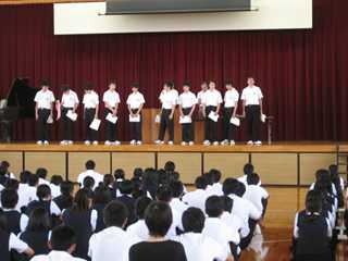 館ですが、全校生徒がしっかりとした態度で参加していました。