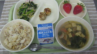 わかめスープ いちご 牛乳