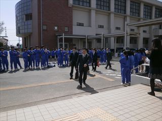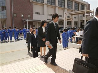 部活動で登校している生徒が、拍手で迎えてくれました。