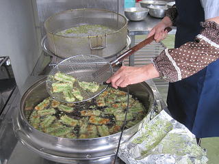 竹輪の磯辺揚げは、衣にあおのりを混ぜました。塩も