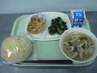 煮ぼうとう メロンパン チキンのフレーク焼き
