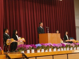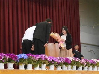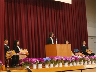先生方の入場から生徒代表からのお別れの言葉と花束贈呈、そして去られた先生方