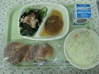 今日は新メニューの「ハンバーグアップルソースがけ」です。