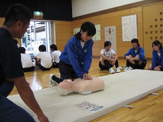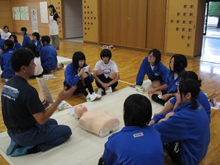 をテーマとして学習しています。その一環として、深谷消防本部豊里分署の方々の指導のもとで「救命基礎講習会」を行いました。AEDの操作の実際を含めて、約2時間の講義になりました。改めて、いのちを守ることの大切さを専門家の方々から学べたことに生徒たちも大変感激していました。