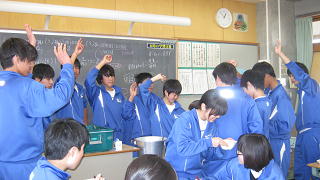 2クラスです。かつのオマケを持っていくと、15~6人出てきてくれました。