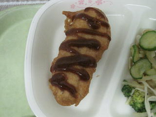 ウィンナーにホットケーキミックスの衣をつけ、形が崩れないように、