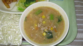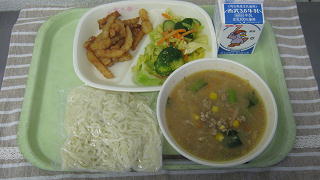 今日はごまたっぷりの給食です。サラダにもラーメンにもたっぷりと