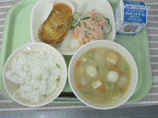 ご飯 魚のピリ辛焼き 上州サラダ 重忠汁 牛乳