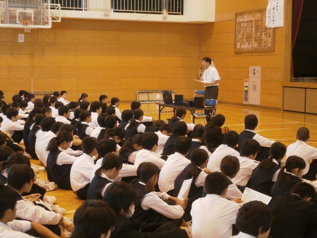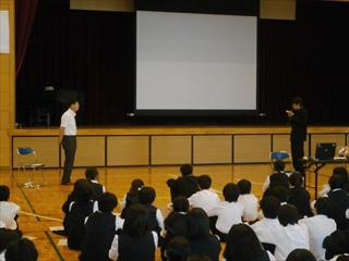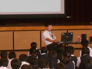 本日の人権講話は、深谷市人権政策課の朝比奈 専門員 様を講師としてお招きして、人権教育についてのお話を聞きました。先生からは、「人権と差別」と題して、人権に関するプレゼン資料をもとにご講演いただきました。全校生徒も、しっかりとお話を聞いていました。朝比奈先生、本日はありがとうございました。 *人権イメージキャラクター 人KENまもる君・人KENあゆみちゃん