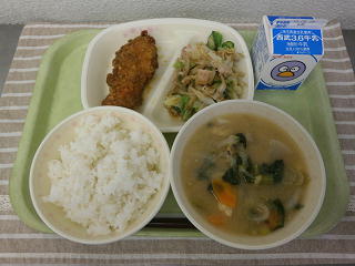 かつ丼 ヘルシーサラダ みそ汁 牛乳