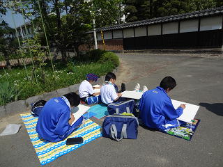 午前中は下書きと色塗りを頑張っています。午後には全員が色塗りに入れるといいですね。