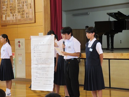今日の生徒朝会では文化祭実行委員長よりテーマが発表されました。