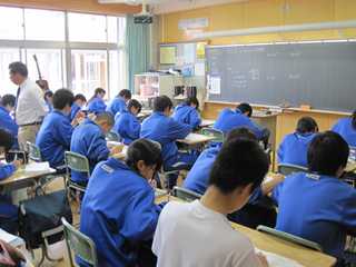 取り組み結果を掲示します。 チャイムが鳴らなくても、廊下には誰もいませんね。 学習に集中する生徒たち。