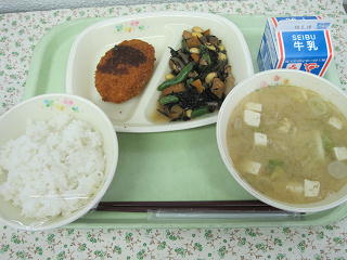 白飯 コロッケ 大豆の磯煮