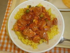 今日のメニュー、『ジャンバラヤ」は深谷市と姉妹都市のアメリカの