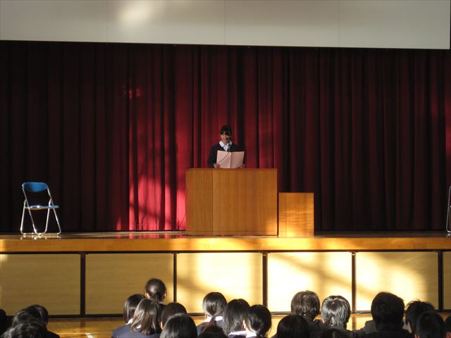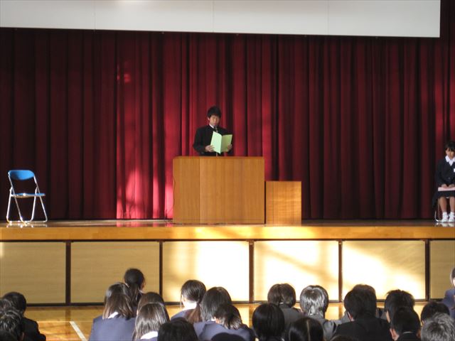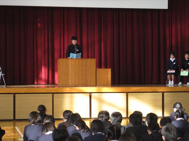 式では、学年代表の3人から意見発表がありました。