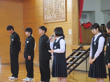 今日の朝会では本部役員より生徒総会に向けた呼びかけと、