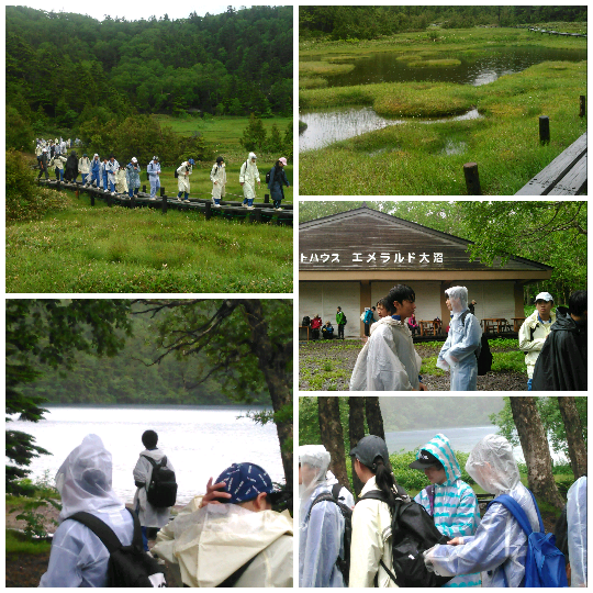 雨の中、水たまりを避け、石につまずかないように注意し、滑らないように気をつけてハイキングをしていましたが、木々の間から現れた湿原や大沼池の風景が、疲れを忘れさせてくれました。