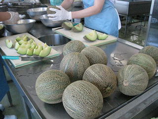 今日は「アムス」という種類のメロンです。八百屋さんが豊里中のために、