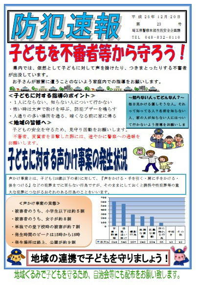 防犯速報第23号~不審者から子供を守る~
